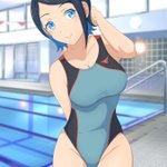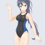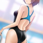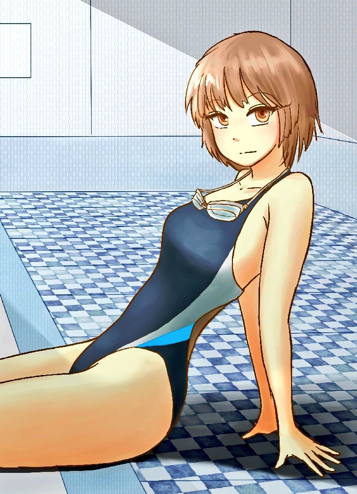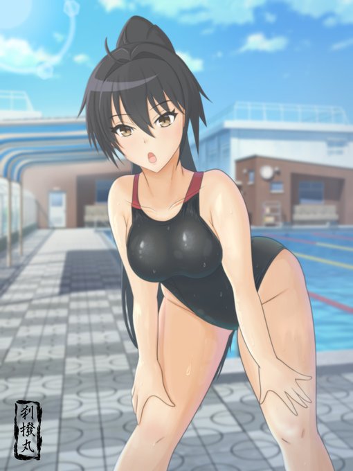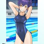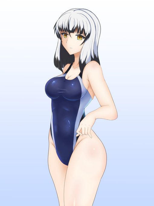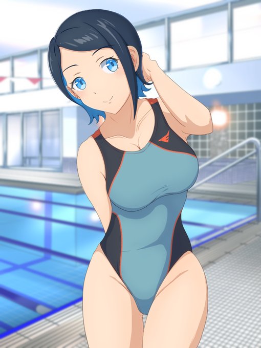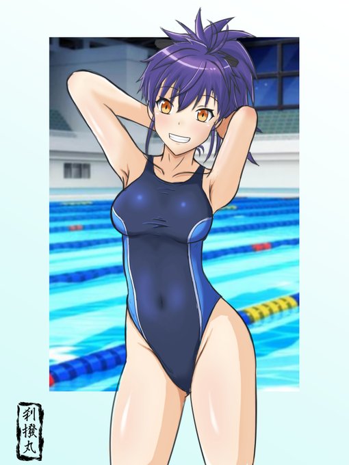 紫様誕生日おめでとうございます(滑り込み) 紫様のナイスバディなら競泳水着も勿論似合うはず! 背景はちょっとやっつけなので今度別途で用意したいですね #刀使ノ巫女 #競泳水着 #6月13日は紫の誕生日