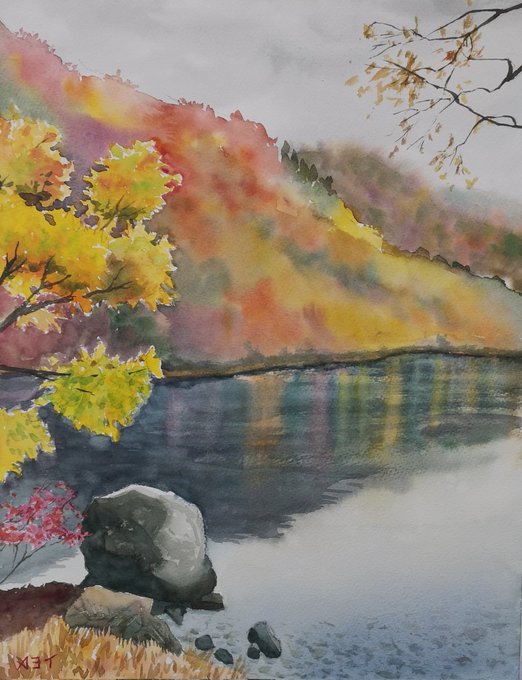 After the rain 雨上がり #watercolor on paper F6 size #watercolour #watercolorpainting #watercolourpainting #landscapepainting #水彩画 #透明水彩 #風景画 #紅葉
