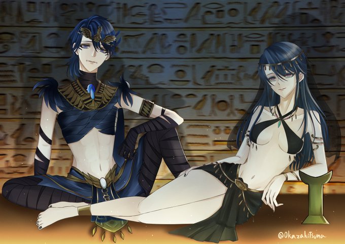 ฟินิกซ์(เอซอป)กับอังเคสเซนซูเทค(สึนะ)ในธีมอียิปต์ค่า ลงงานดึกมากเพราะไฟดับระหว่างทำงาน แงงง แต่ก็ผ่านมาได้ด้วยดีจนเป็นรูปนี้ค่ะ #คลังมโนสึนะ #AesopCarl #イソップカール #納棺師 #IdentityVfanart