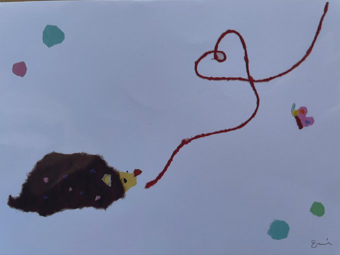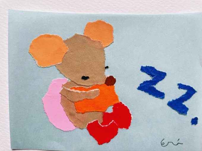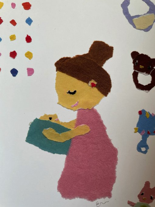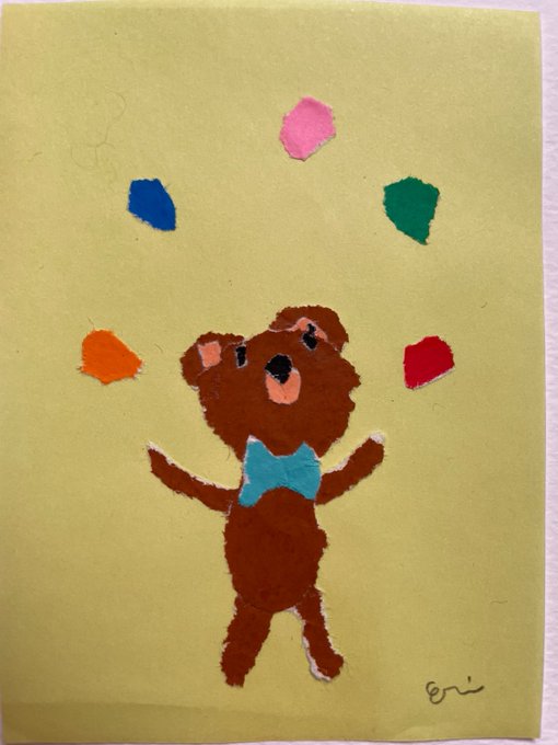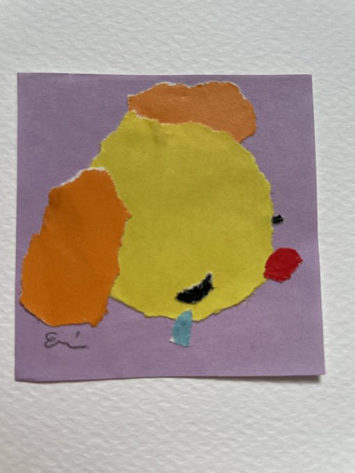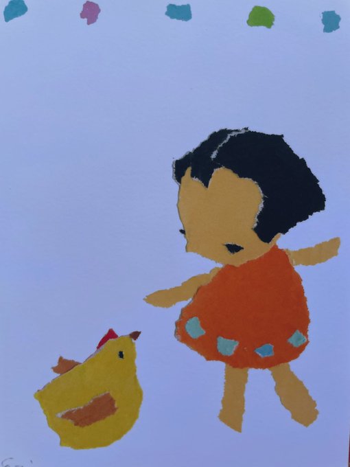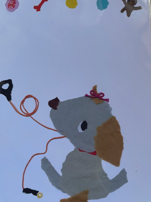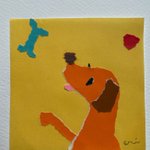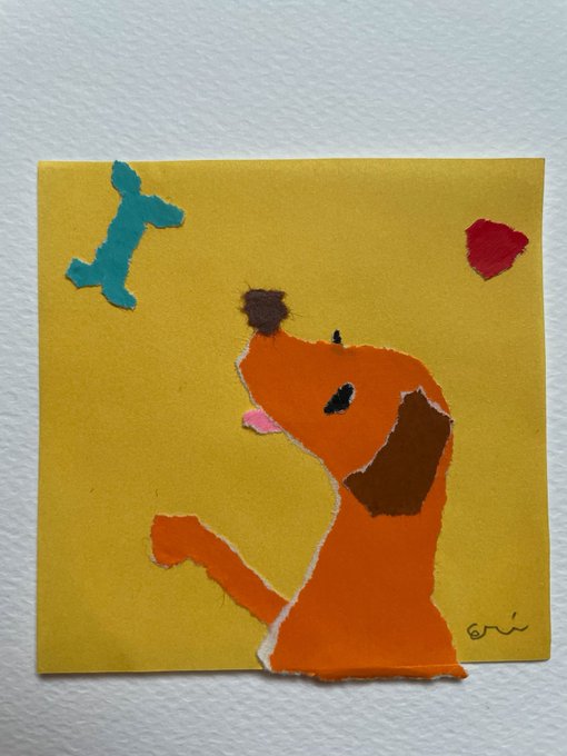 ちぎり絵で作った作品です。 「早く散歩に連れてってよ。」 #イラスト #イラスト好きな人と繋がりたい #アナログイラスト #オリジナルイラスト #紙アート #紙作品 #犬 #犬好きさんと繋がりたい