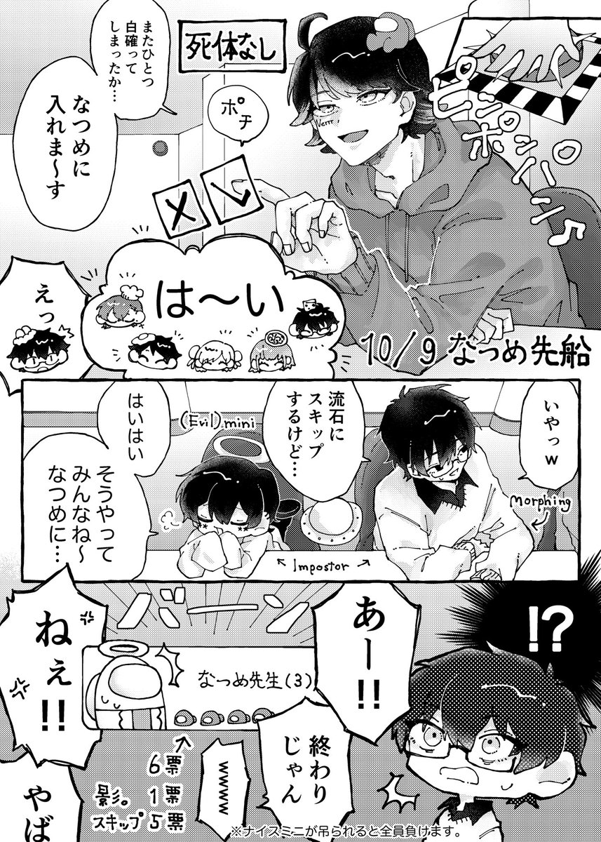 10/9 #なつめ先船 なつめELEZY黒黒吊り試合を漫画にしました💫ELEZYさん視点あまりにも目まぐるしくて面白すぎました😂 #絵レジー #なつめせんせ絵 #みてみてねろちゃん #ぴかあーと #おべるかき #さかないらすと #影絵と書いてファンアートと読ませたい