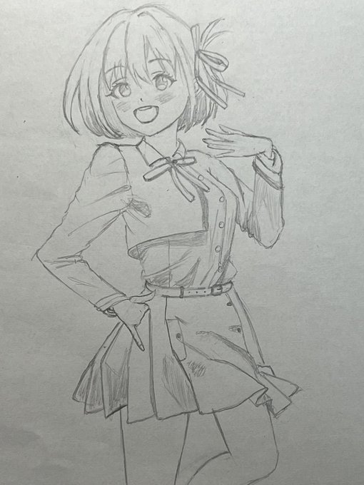 こんばんは✨✨*\(^o^)/* 今日の練習落書きはリコリコのちさとちゃんです✨ 苦手なポーズなので練習しました✨ 頑張りましたᕦ(ò_óˇ)ᕤ✨✨✨✨✨ #絵描きさんと繋がりたい #絵描きさんフォロバ100 #絵柄が好みって人にフォローされたい #練習 #落書き #ちさとちゃん