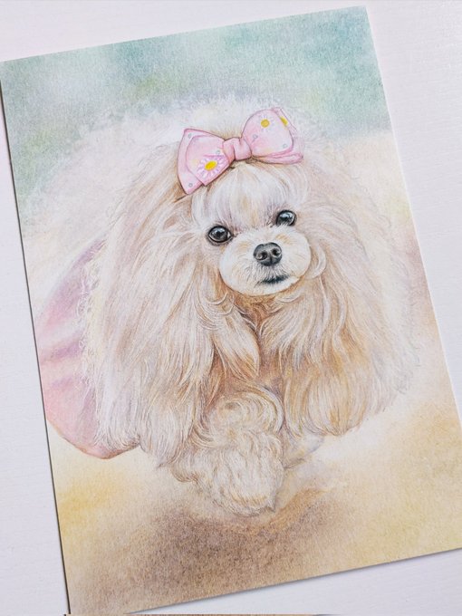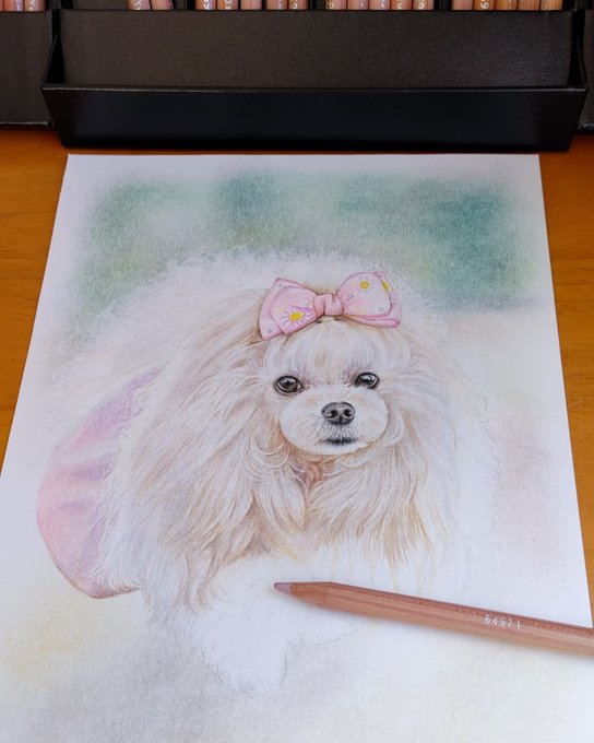 #色鉛筆画 ✏️オーダー #マルプー 完成✨ 天使みたいにふわりと駆けるニコチャン🐶 #羊毛ちくちく #羊毛ちくちくheartleaf #羊毛ちくちく瞳コレクション #カリスマカラー #カランダッシュルミナンス #ダーウェント #絵描きさんと繫がりたい #犬好きさんと繋がりたい