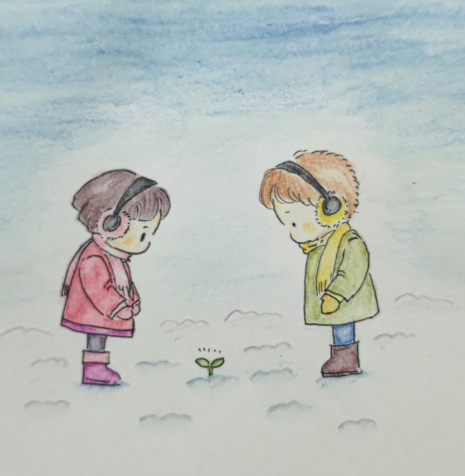 今日のpixivでのお題「耳あて」 「わ…わぁ 君がくれた耳あてぬくかー 来年も君と仲良く過ごせる気がするなー」 #耳あて #絵描きさんとつながりたい #絵描きさんと繋がりたい #絵柄が好みって人にフォローされたい