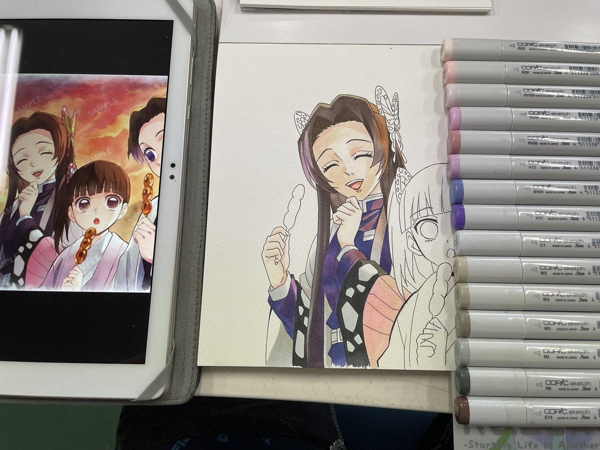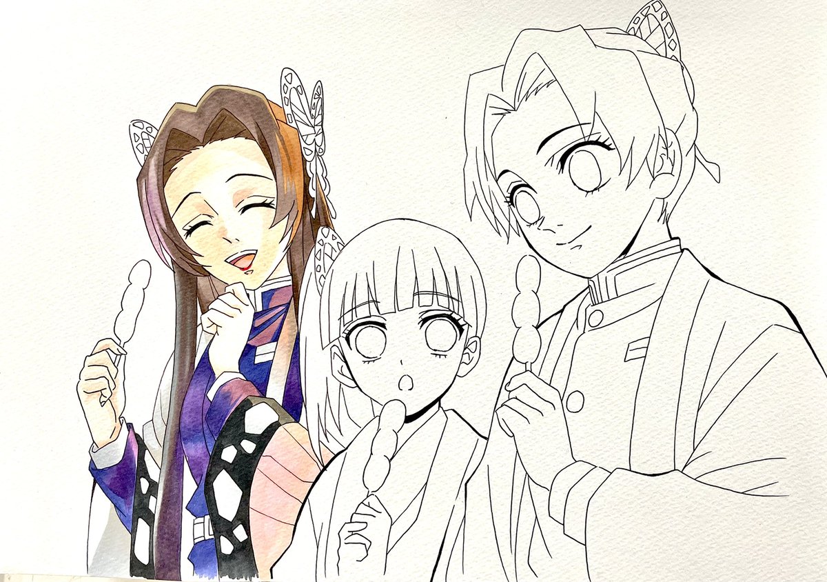 昼休憩のカナエさん☆ 後髪飾りと団子だな! その後カナヲちゃん!! #イラスト #模写 #鬼滅の刃 #胡蝶カナエ #イラスト拡散 #フォロワーさんの推しを描きたい #フォロワーさん増やしたい