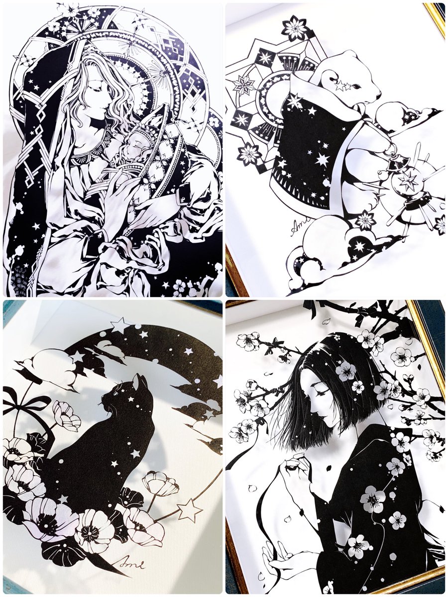 #自分の作品を載せて褒めあおう 素敵なタグありがとうございます✨ 遅ればせながら参加させていただきます。褒められたら嬉しい…! 切り絵になります。 物語を感じられるような作品を目指して黒い紙をひたすら切ってます✨