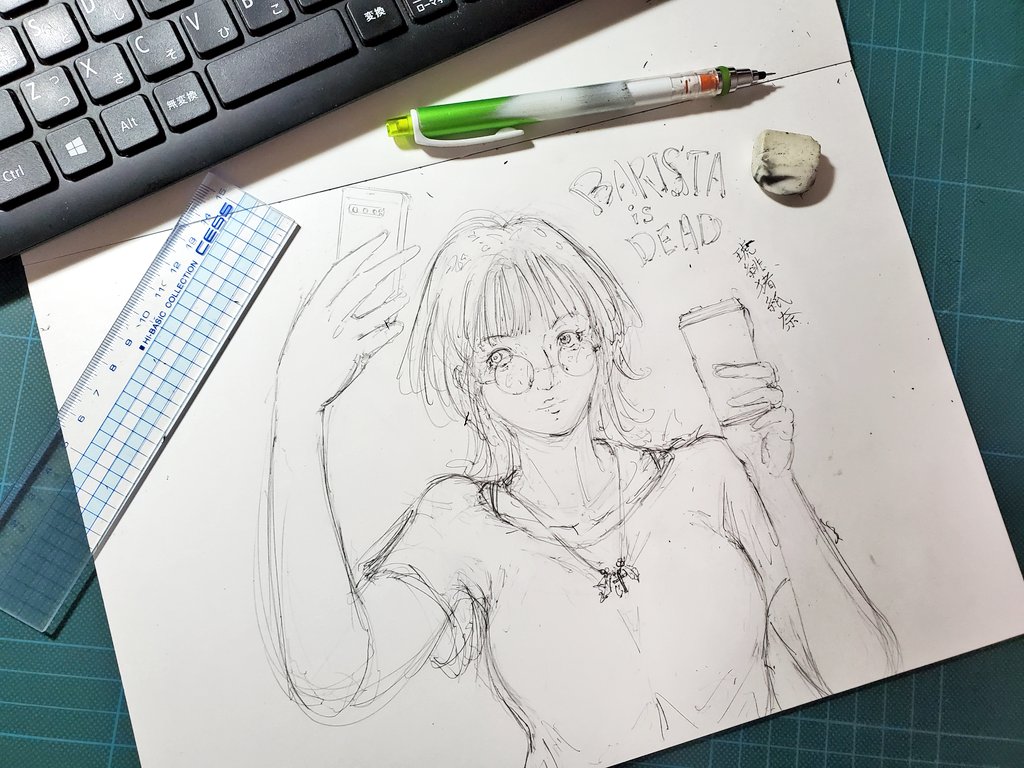 久しぶりの #イラスト 投稿です✨ 間が空いた理由、やる事があって、寝る時間には落ちていただけです💦 グループ展参加 や 神激イラスト を経て描き慣れた #オリキャラ #自撮り女子 #眼鏡女子 #コーヒー #baristaisdead #琥緋猪紙奈 #イラスト好きな人と繋がりたい 服をQVCっぽくした(笑)