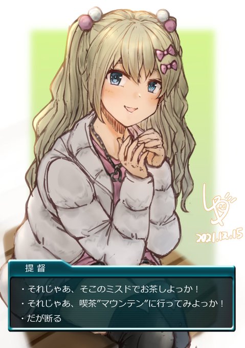 『テートク、小腹空いてない?・・・ね~ぇ空いてない?(,,•ω•,,)チラッチラッ♡』 #グレカーレ #艦これ版深夜の真剣お絵描き60分一本勝負 #艦これ版真剣お絵描き60分一本勝負_20211215 本日はグレカーレちゃんとデートです! ・・・おや、お腹が空いたのかな? さて、どうしようかな~?(∩´∀`)∩