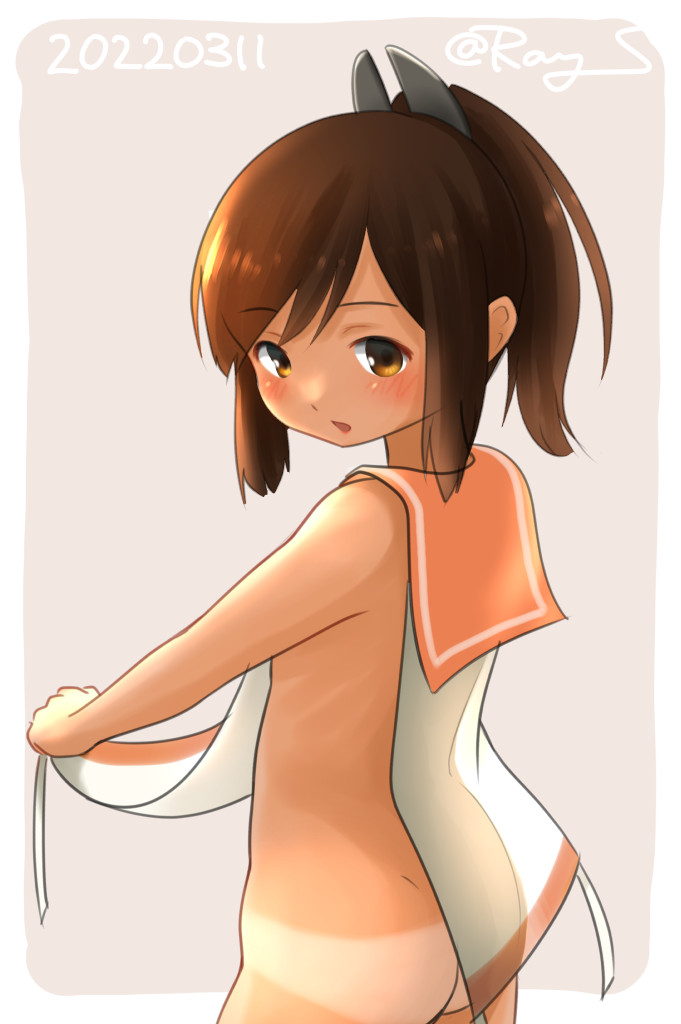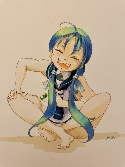 涼風ちゃんでした。 ちょっとお行儀悪いけど底抜けの笑顔が似合う女の子…っていう印象でした😄 笑ってる顔しか思い浮かばない不思議な子です。。。😊 #艦これ版深夜の真剣お絵描き60分一本勝負 #艦これ版真剣お絵描き60分一本勝負_20220311