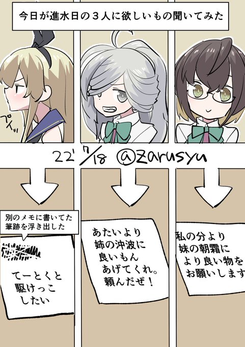 提督(ん? なんか島風のメモ、別の紙に書いてた筆跡らしきものがあるな……鉛筆でこすってみるか) 島風、朝霜、沖波 #艦これ版深夜の真剣お絵描き60分一本勝負 #艦これ版真剣お絵描き60分一本勝負_20220718
