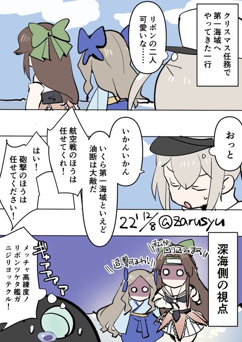 クリスマス任務でやってきた艦隊に対する、第一海域にいる深海側の心理状態 朝風、神通、グラーフ #艦これ版深夜の真剣お絵描き60分一本勝負 #艦これ版真剣お絵描き60分一本勝負_20221208