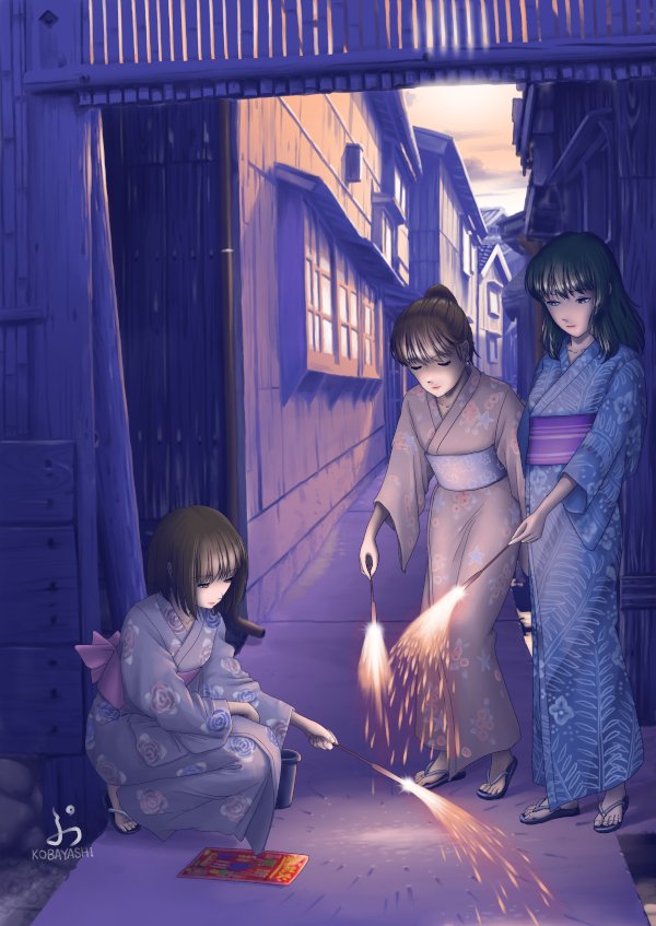 新作です。タイトルは「灯籠と花火大会」‼️ . 見て下さった方の中で、少しでも気に入っていただけましたら幸いです(*´∇`*)✨✨ . . #絵描きさんと繋がりたい #illustration #花火 #灯籠流し #灯籠