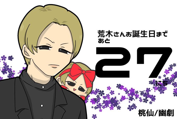 荒木さんお誕生日まであと27日! 荒木さんの年齢に因んで40日前から毎日カウントダウンのイラストを投稿しています🥳🎉✨✨ ⬇️リプ欄ではキャラとの思い出を3コマ程度の漫画にしてます。こちらも毎日投稿!⬇️ #荒木宏文 #荒木宏文誕生祭2023 #荒木さんバースデーカウントダウン2023