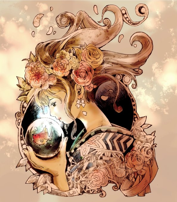 水・宙・華(HISOKANI SAKU MONO) 【過去絵リメイク~彩色し直し再掲】 #イラスト #落書き #華 #イラスト好きさんと繋がりたい #イラスト好きな人と繋がりたい #絵描きさんと繋がりたい