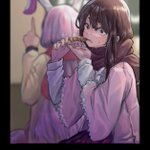 🌙🎍 . . . つねみ(@ closer_f )さん主催 「東方ミュシャ風合同誌」にて寄稿したイラスト(全体公開許可が降りたので公開しました👌) 人選はめっちゃ悩んだのですが…構図は即決した思い出!布を垂らしたかった #蓬莱山輝夜 #八意永琳 #東方Project