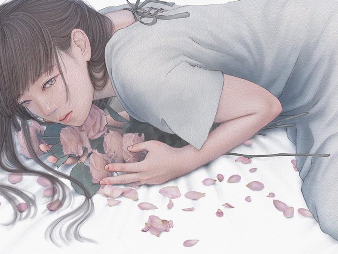 #ローズの日 #薔薇の日 「幸福な花嫁は不幸にならなければいけない」 実は薔薇モチーフの作品はあまりなくて…この作品はA3と大きめサイズだったので、薔薇を塗っても塗っても終わらなくて焦った思い出がありますw #イラスト好きな人と繋がりたい #絵描きさんと繫がりたい #イラスト #アナログ絵