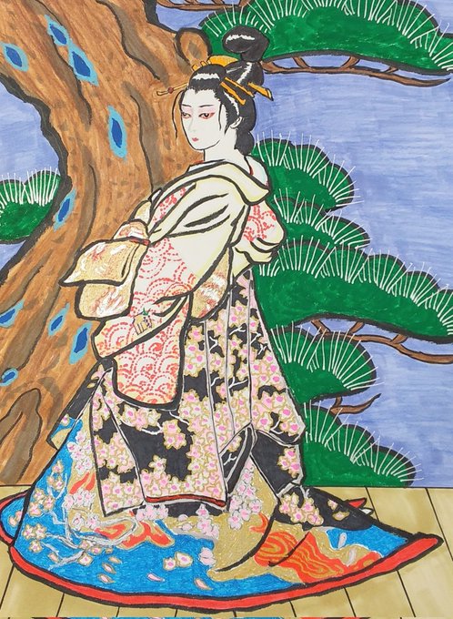 #衣装 松山太夫(まつやまだゆう)という遊女が、恋人の夢の中に現れます✨衣装は満開の桜が描かれ、黒と青で統一された打掛です😊 #イラスト #絵描きさんと繋がりたい #絵師さんと繋がりたい #冬の創作クラスタフォロー祭り #みんなで楽しむTwitter展覧会 #Twitter交流会会場 #art
