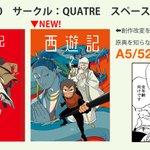ギリギリになっての告知になんですけど、明日のCOMITIAにスペース出ています。 お品書きのいずれかの本を購入すると無配が2種付きます(数には限りがございます) 通販こちら→ ecs.toranoana.jp/tora/ec/cot/ci… #COMITIA #COMITIA143 #COMITIA143お品書き #擬人化創作 #ワンモタ #西遊記 #ユウラマイシン