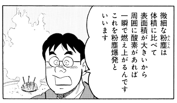 粉塵爆発と聞いてどれどれと覗いたらごくごく当たり前の現象を悪魔呼ばわりしている。「解体屋ゲン」では小麦粉を使って粉塵爆発を起こしている。砂糖でも片栗粉でも金属粉でも何でも使える。 #解体屋ゲン twitter.com/08broc/status/…