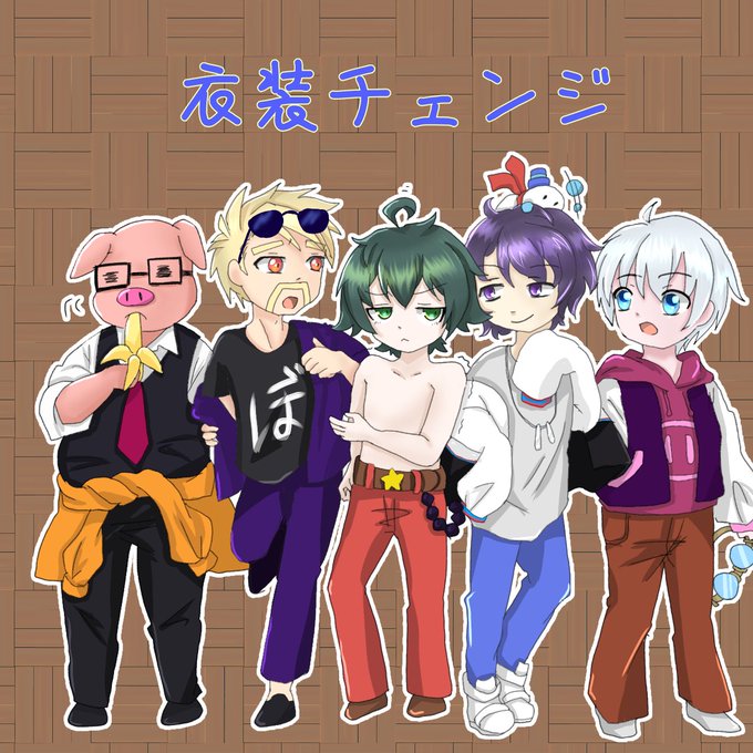 全員いれるのって難しいね…ヾ(・ω・`;)ノねここさんから衣装チェンジお題をほんのり頂いた気になって、ランダムでチェンジさせてみた…よ ごめんね、おんちゃん、寒い格好させて… #ドズル社アート #ドズってる #ぼんさん何してんすか #はよ見ろやあ #見るかもわからん #誰でも見れますねえ