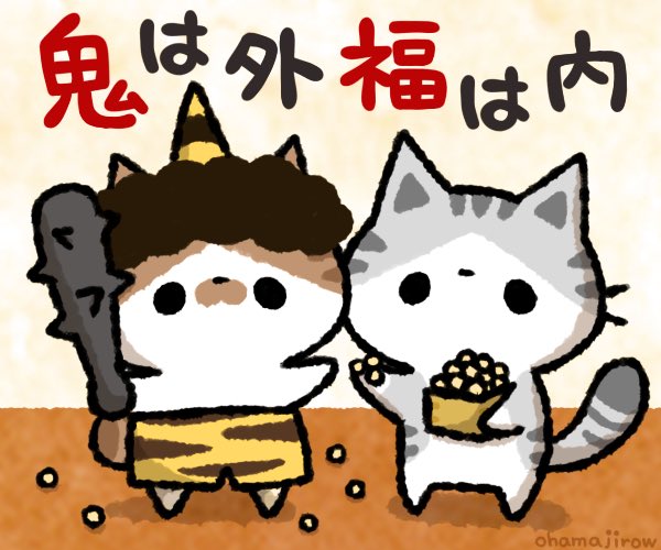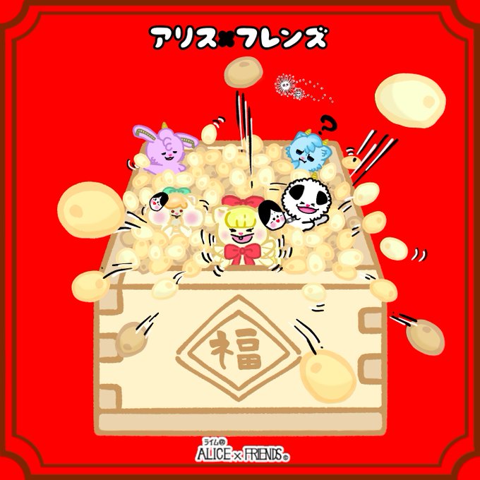 撃退 豆まきイラスト👹 鬼は〜外 福は〜内の掛け声に合わせて分かっていてもついつい両方ぶちまけちゃう。皆に福あれ #アリスフレンズ #オリジナルキャラクター #オリキャラ #ゆるキャラ #創作 #イラスト #art #illustration #Illust #イラスト好きな人とつながりたい #どうぶつ #豆まき #節分の日