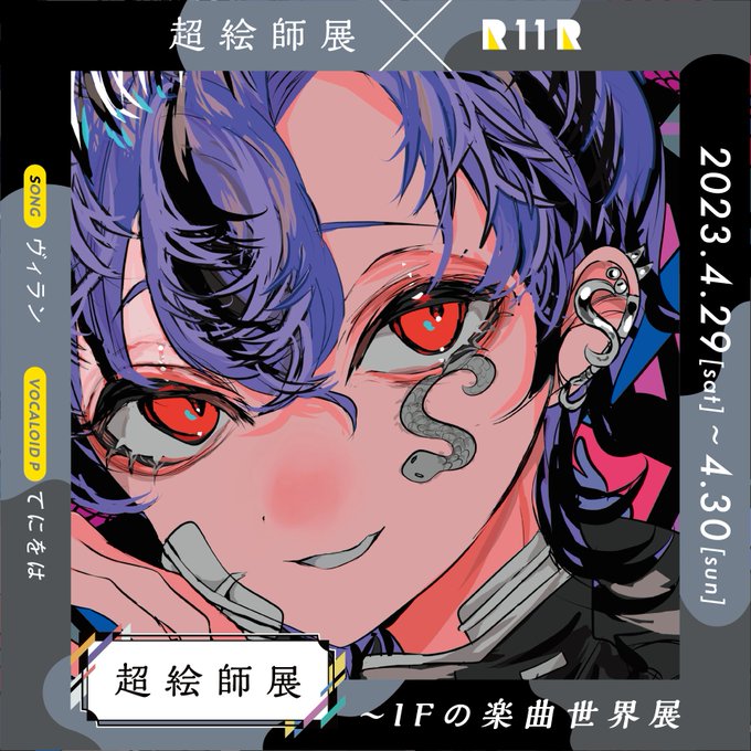 【お知らせ】 ニコニコ超会議2023 ”超絵師展 〜IFの楽曲世界展〜”に参加いたします。 私は てにをは 様の楽曲、『ヴィラン』のイラストを描かせていただきました! chokaigi.jp/2023/plan/eshi… #超会議 #超絵師展