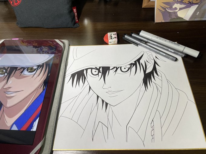 土曜日ー!! 今日は怠惰に昼起きしてリクエストのペン入れ終わらせました☆ これからちょい出かけますー! #イラスト #模写 #テニスの王子様 #越前リョーマ #イラスト拡散 #フォロワーさんの推しを描きたい #フォロワーさん増やしたい #イラスト好きさんと繋がりたい