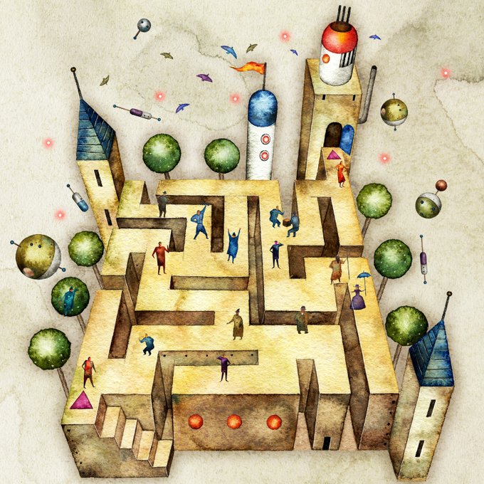 おはばコ~☀️ 今日は巨大迷路に迷い込んだよ! 誰がいちばん早く脱出できるかなー?? あおばコの勘はよく働くほうなんだ! きっと!こっち!!!σ゚ロ゚)σ #変に自信ある #ささおゴール見えてるの? #あおばコ #一日一絵 #迷路 #イラスト #OCイラS #みんなで楽しむTwitter展覧会