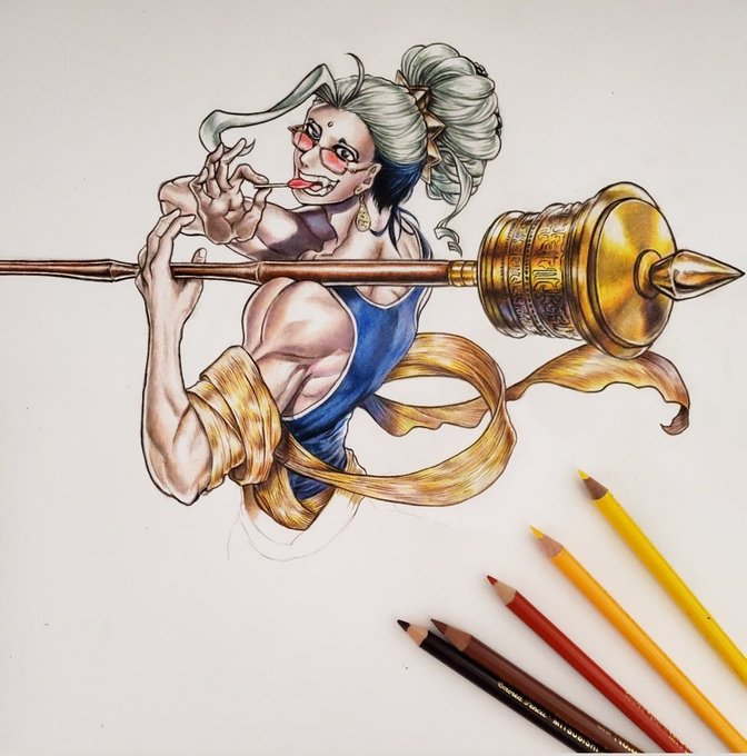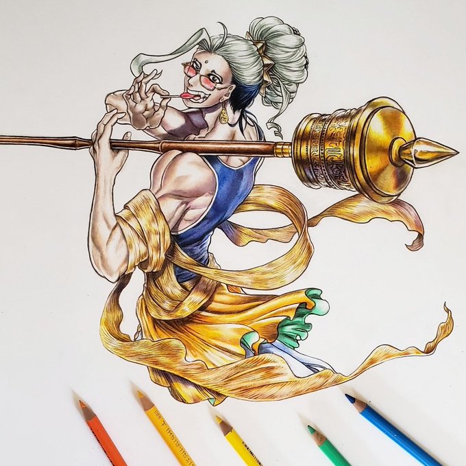 終末のワルキューレの釈迦様が描けました😄 幸せは人それぞれ違う それを押し付けたり、否定する者が気に入らない。 他の誰かの幸せを守るために戦う姿がかっこいいですよね😆 #色鉛筆画 #イラスト #終末のワルキューレ #釈迦 #絵描きさんと繋がたい