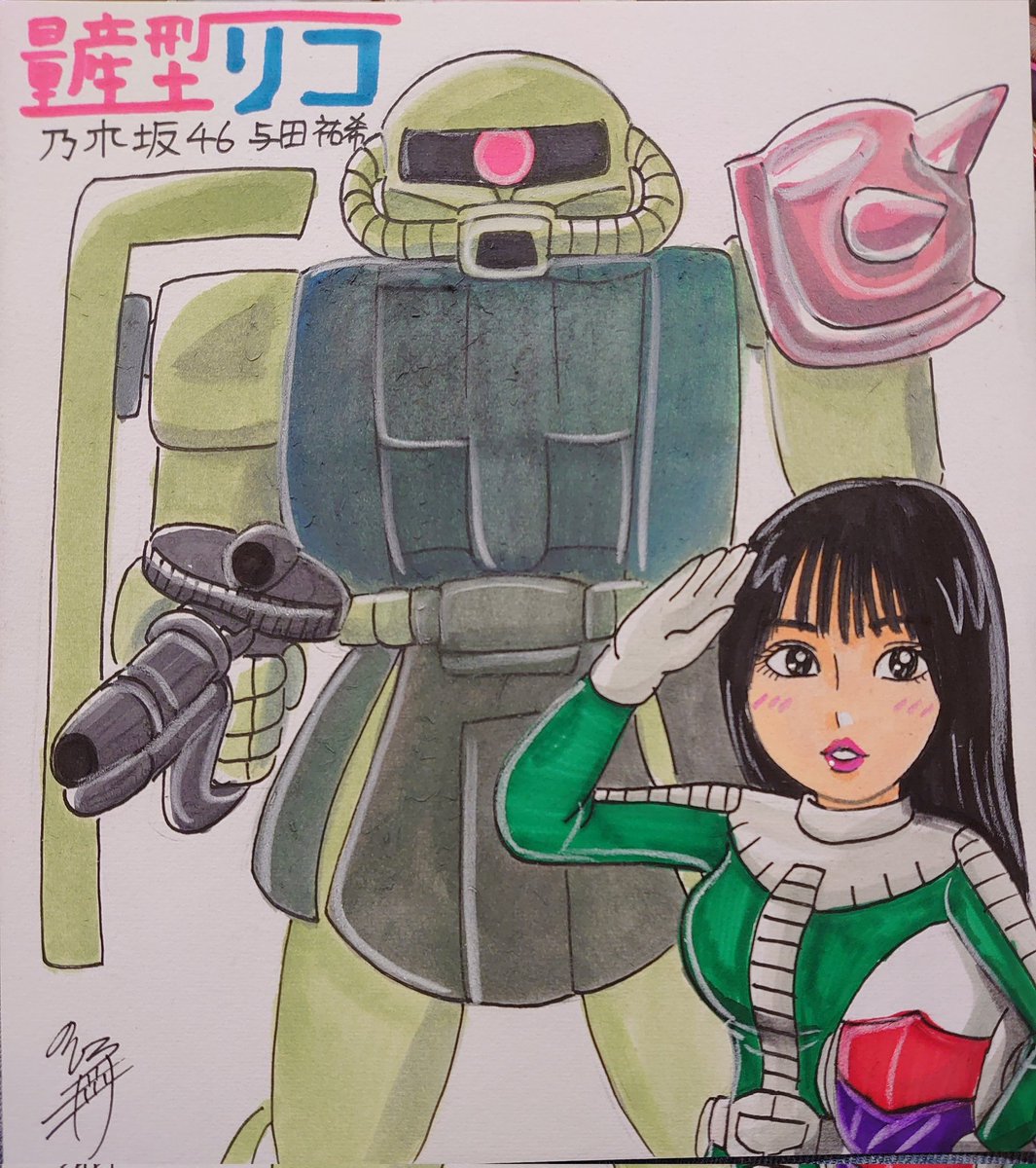 ドン! 今日描いた乃木坂ちゃんで〜す(*^^*) 見せてもらおうか!量産型リコの性能とやらを…www #似顔絵 #乃木坂46 #与田祐希 #乃木坂46好きな人と繋がりたい #乃木坂イラスト #量産型リコ #量産型リコ専用ザク
