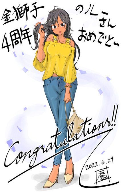 ルーさん4周年おめでとー!!(*'ω'*)ノ 髪を短く切ったばかりなのに勝手に伸ばしてごめんねw たまには気分転換ってことで✨ #金獅子ART pixiv.net/artworks/99376…