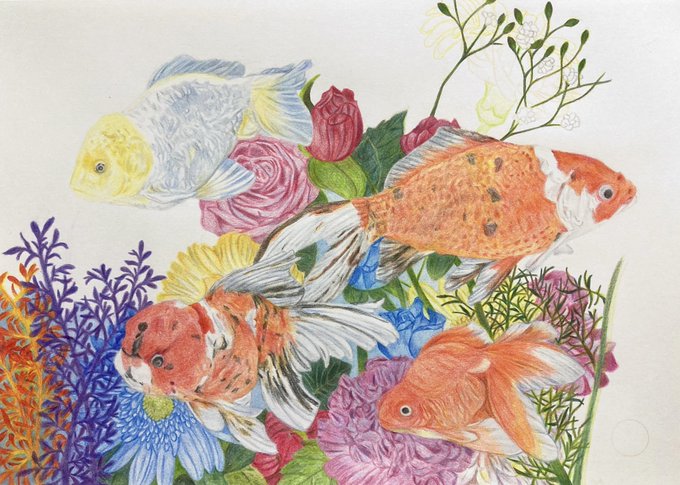 色鉛筆画【 悠悠金魚 】 #色鉛筆 #色鉛筆画 #絵画 #絵 #金魚 #pencilart #colorpencil 完成しました。 A4サイズの作品になります。 ご覧頂き有難うございます。 ー yotto ー
