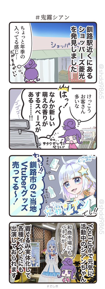 釧路のご当地Vtuber鬼霧シアンちゃん描きました⭐️ #コミックエッセイ #漫画が読めるハッシュタグ #エッセイ漫画 #上海ダーリンダイアリー #鬼霧シアン #シアンスケッチ #釧路 #4コマ