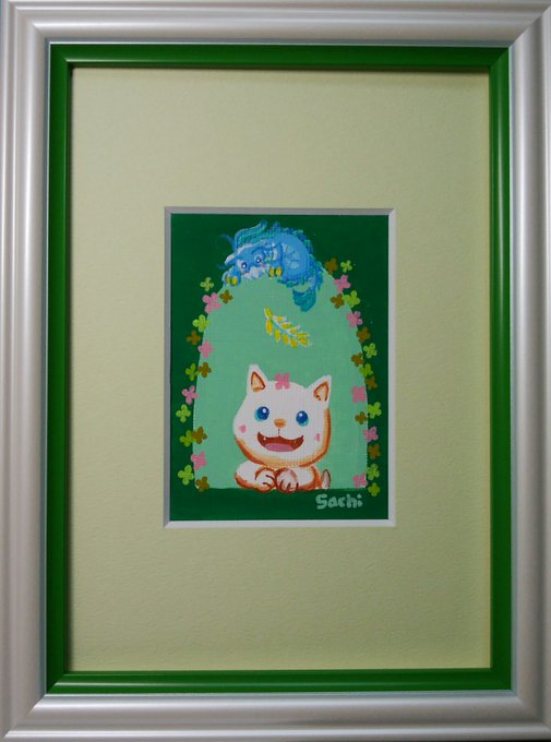 銀座中央ギャラリー 「ATCサイズ展」本日17:00まで 作品紹介 「Shichifuku nyanがいく!」 手のひらサイズで Shichifuku nyanが福を運んでいます😺🐸 昭和レトロなビルのギャラリーに来てにゃ😺✨ #銀座 #銀座中央ギャラリー #ATCサイズ #ミニ額 #猫イラスト #猫好き #イラスト #illustration