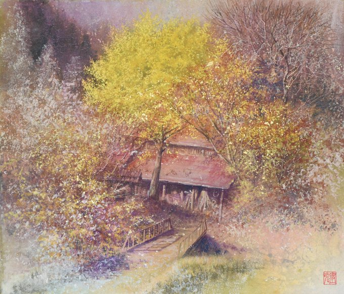 益々深まる秋🍁 Gradually deepening autumn. #東北旅行 #一関市 #山里の秋 #色付くイチョウ #銀杏 #銀杏黄葉 #日本画作品 #棚町宜弘 #japaneseautumn #coloredleaves #gingotree #gingo #japanesepainting #japaneseartist
