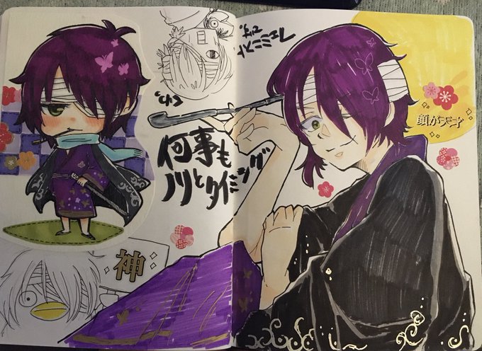 このいただいたオタクシールを使うのが楽しくて仕方ないのだがꉂ(ˊᗜˋ*)wwww #fanart #doodle #drawing #gintama #銀魂 #銀魂は永久に不潔です #イラスト #takasugishinsuke