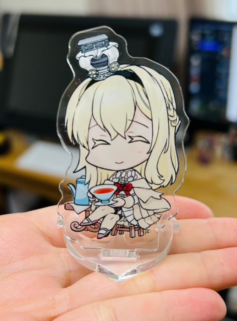 現地限定新刊特典、ウォー様と一緒にお茶できるアクリルスタンドです。台座は⚓️の形です。 数に限りがありますが明日現地にお越しの方はぜひ入手していただければと思います🫖 #鎮守府FSD #ウォー様と一緒 twitter.com/narusawakun/st…