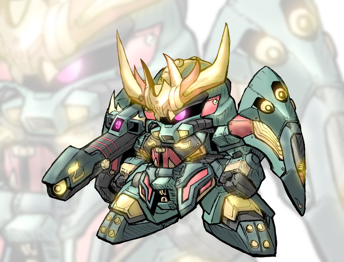#うちの子の設定画をあげるとファンが増えるらしい #閃光の魔封帝 武者クスィーガンダムこと閃光武者・魔封帝 調査のために地上に降りた天界武者 二刀流で目にも止まらぬ速さで刀を振るい、胸には炎と水の力を宿した宝玉と大将軍のような天に選ばれし者にしか与えられないはずの頑駄無結晶が輝く。