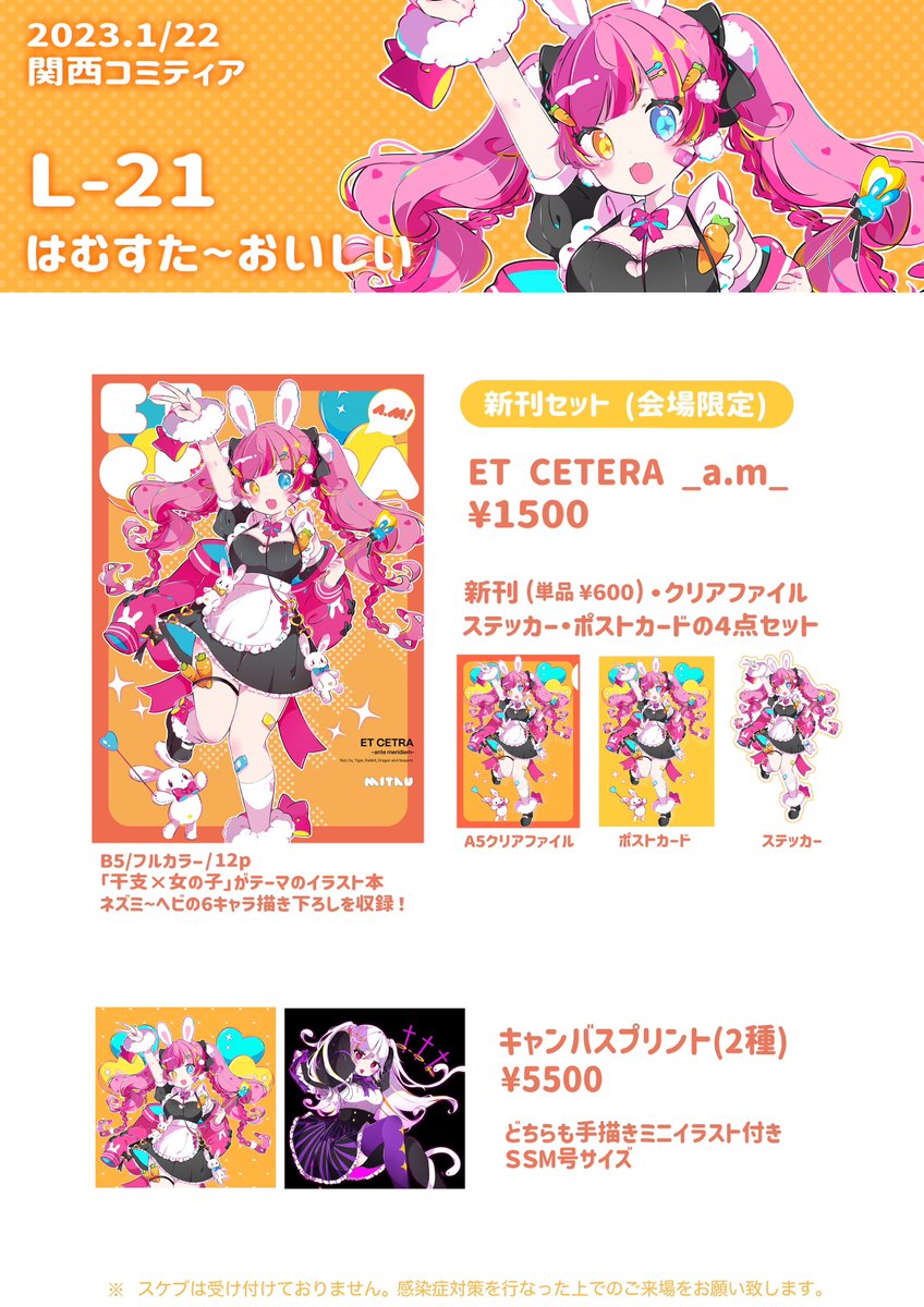#関西コミティア66 1/22(日)京都パルスプラザでのお品書きです🎶 [スペース L-20] 名刺が山ほどあるので名刺だけでも貰いに来てください👌 twitter.com/4633ka7/status…