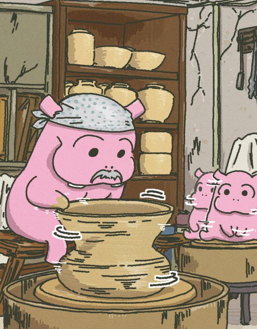 隷ちゃん(@ystk500)からの発注で逢魔きららさんモチーフの壺・徳利・お猪口を作成しやした。 お衣装から図案のモチーフ拾ってくのめっちゃ楽しいな...。 『信楽並濾土+呉須下絵+石灰透明釉...1230℃還元焼成』 #あくまびじゅつかん #陶芸