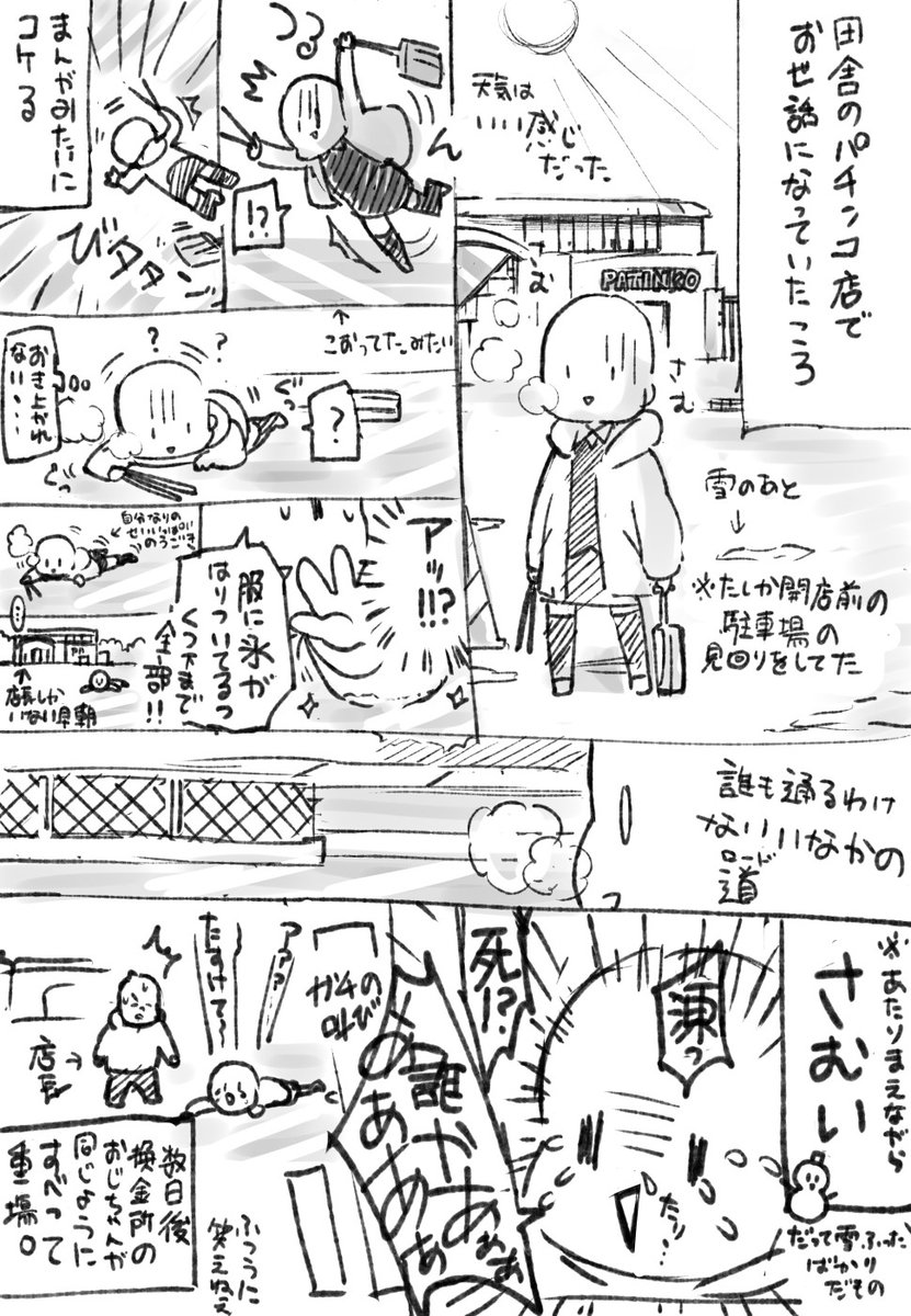 昨日実家帰る途中盛大に転びました。 わざわざ水溜まり避けて歩いたのに 滑って泥水浴びました。恥ずかしっ/// #CLIPSTUDIOPAINT #イラスト #絵日記 #雪の日 #イラスト好きな人と繋がりたい