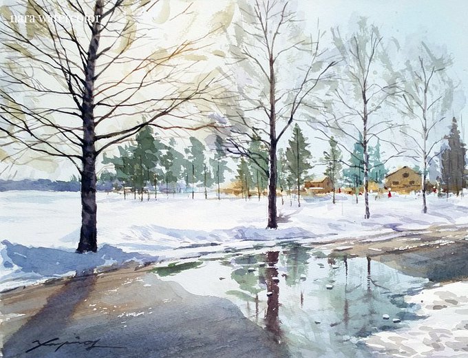 『 帰路につく みぞれ 』 油彩、F80号キャンバス 2022年制作 #絵描きさんと繋がりたい #絵柄が好みって人がいればいいなぁ #みんなで楽しむTwitter展覧会 #油絵 #水滴 #雪 #みぞれ