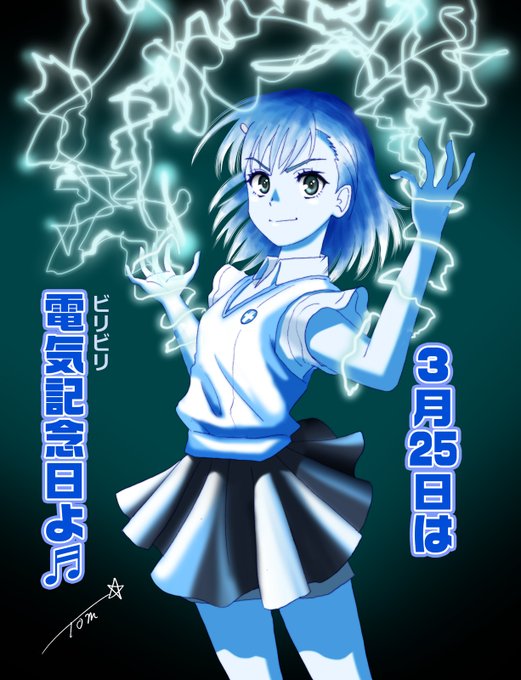 3月25日は #電気記念日♬ 明治11年のこの日に開設した中央電信局での祝賀会になんとバッテリーで電照したのが日本初の電灯だったという。 で、放送時からずっと描きたかったビリビリ娘 #御坂美琴 初めて描いた♪ (*´д`*)かーいく描けた〜 #1日一点とにかく描く #今日は何の日 #とある科学の超電磁砲