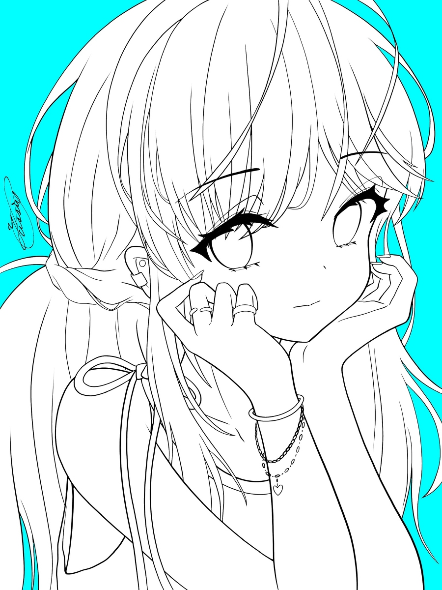 Looking at you. 制作過程の動画も見れます(*ᴗˬᴗ)⁾ ↓↓↓ ibispaint.com/art/762496385/ #ibispaint #頬杖 #頬杖女子 #イラスト好きさんと繋がりたい #絵師さんと繋がりたい