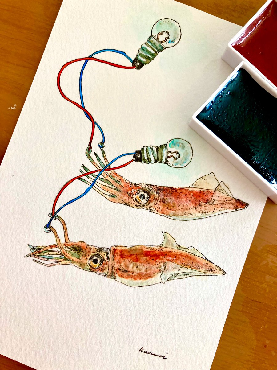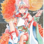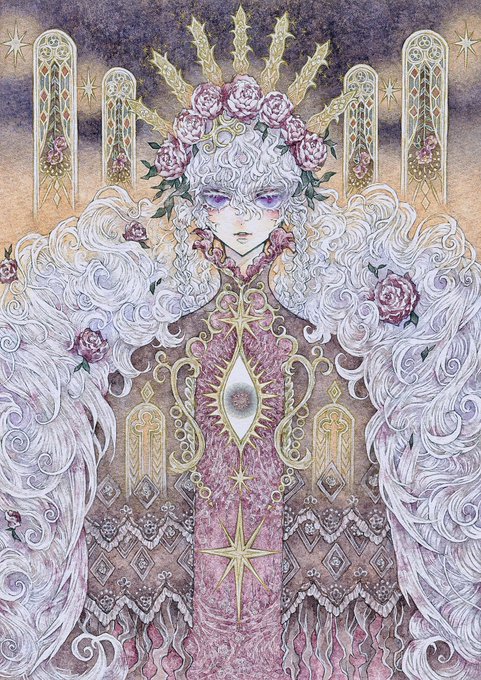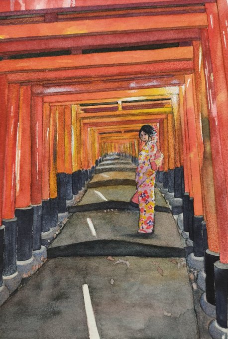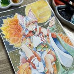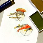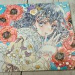 アクリルデネブに上羽絵惣の顔彩で着彩 スキャン画質荒くていい感じに荒が目立たない😂 原画はギラッギラです #顔彩 #アナログイラスト twitter.com/muttikutiku/st…