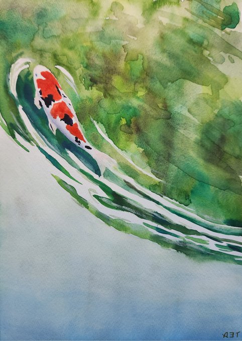 Koi 鯉 顔彩で描きました。 #日めくり水彩画 #watercolour #watercolorpainting #watercolourpainting #水彩画 #透明水彩 #顔彩