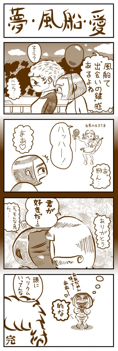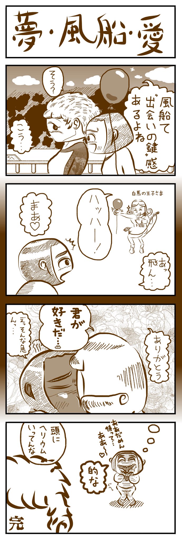 @chiplizard1 作 4コマ漫画 【カエルのギョーレツ】 twitterにて1日1話公開中! 第27回は 『風船の話』です。 何卒よろしくお願いいたします。 #漫画が読めるハッシュタグ #4コママンガ #4コマ漫画 #カエルのギョーレツ #風船 #サーカス #木片トカゲ #宣伝