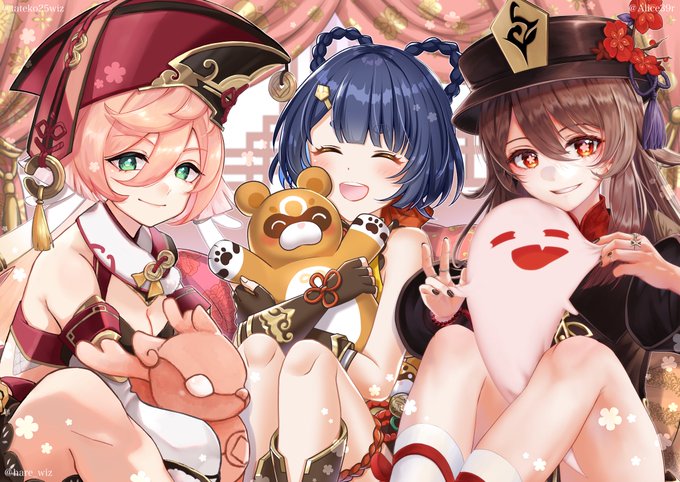 煙緋&香菱&胡桃 璃月炎トリオで女子会🥰 ハレさん(@hare_wiz )とAlice*さん(@Alice39r )との合作です! #原神 #GenshinImpact #yanfei #HuTao #Xiangling #煙緋 #胡桃 #香菱