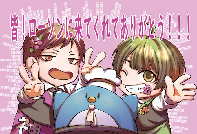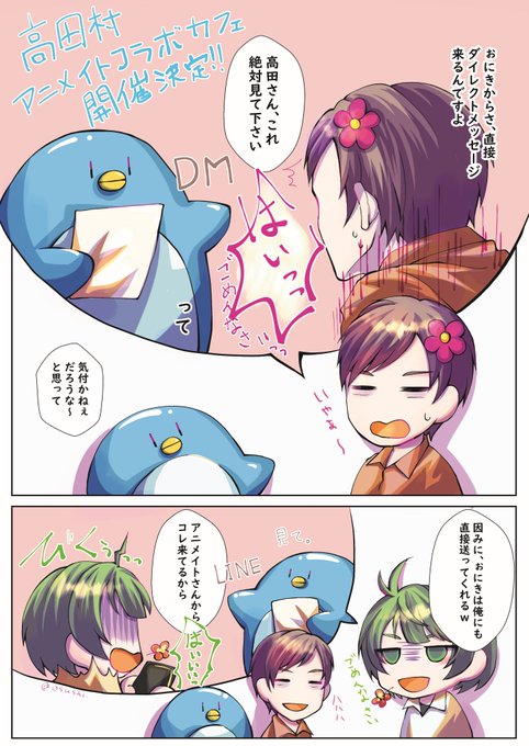 高田村アニメイトコラボカフェ開催おめでとうございます! 相変わらず何も知らない村長と有能ぉにき(*´ω`*) #高田村_x_animatecafe #高田村コラボカフェ #たけぉぇかき