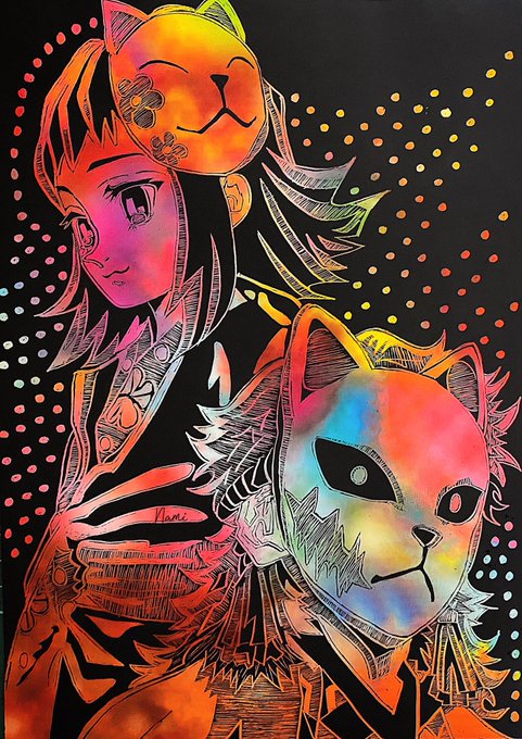 No.42 おはようございます☀️ 今日も笑顔で楽しく過ごしましょ ٩(ˊᗜˋ*)وわっしょい🔥🔥🔥 #鬼滅の刃 #kmt #kmtスクラッチ #スクラッチアート #鬼滅の刃ファンアート #鬼滅の刃好きと繋がりたい
